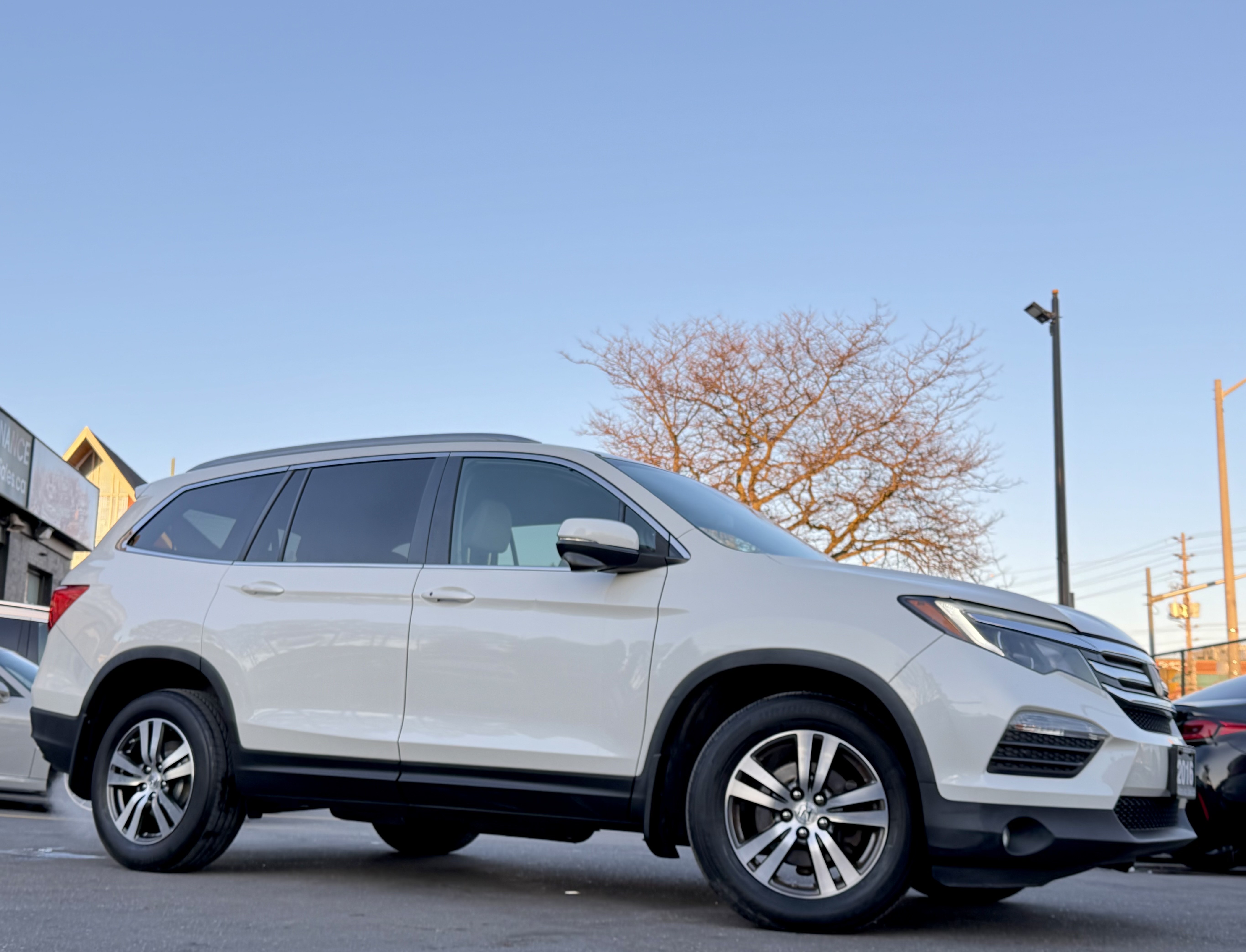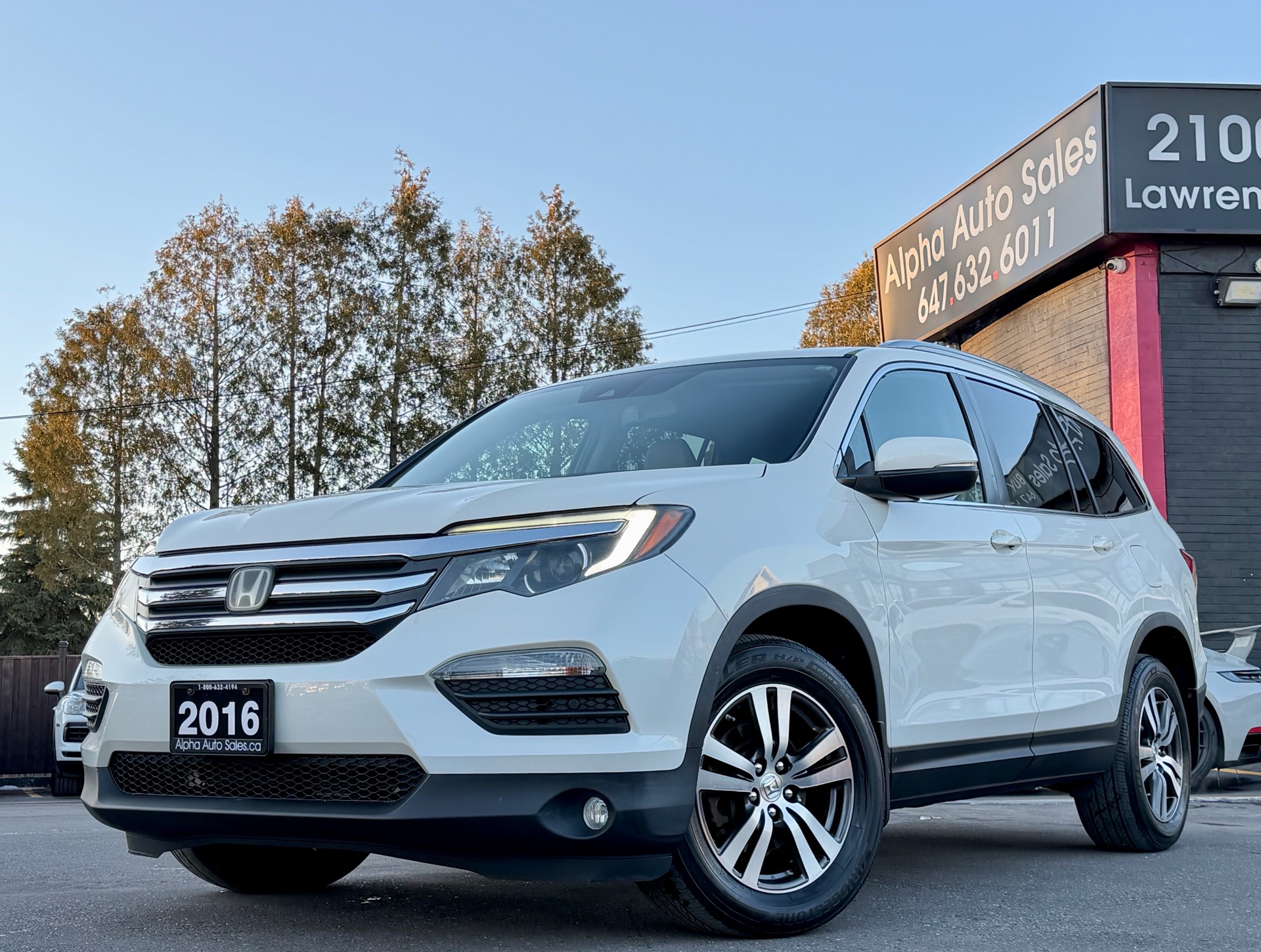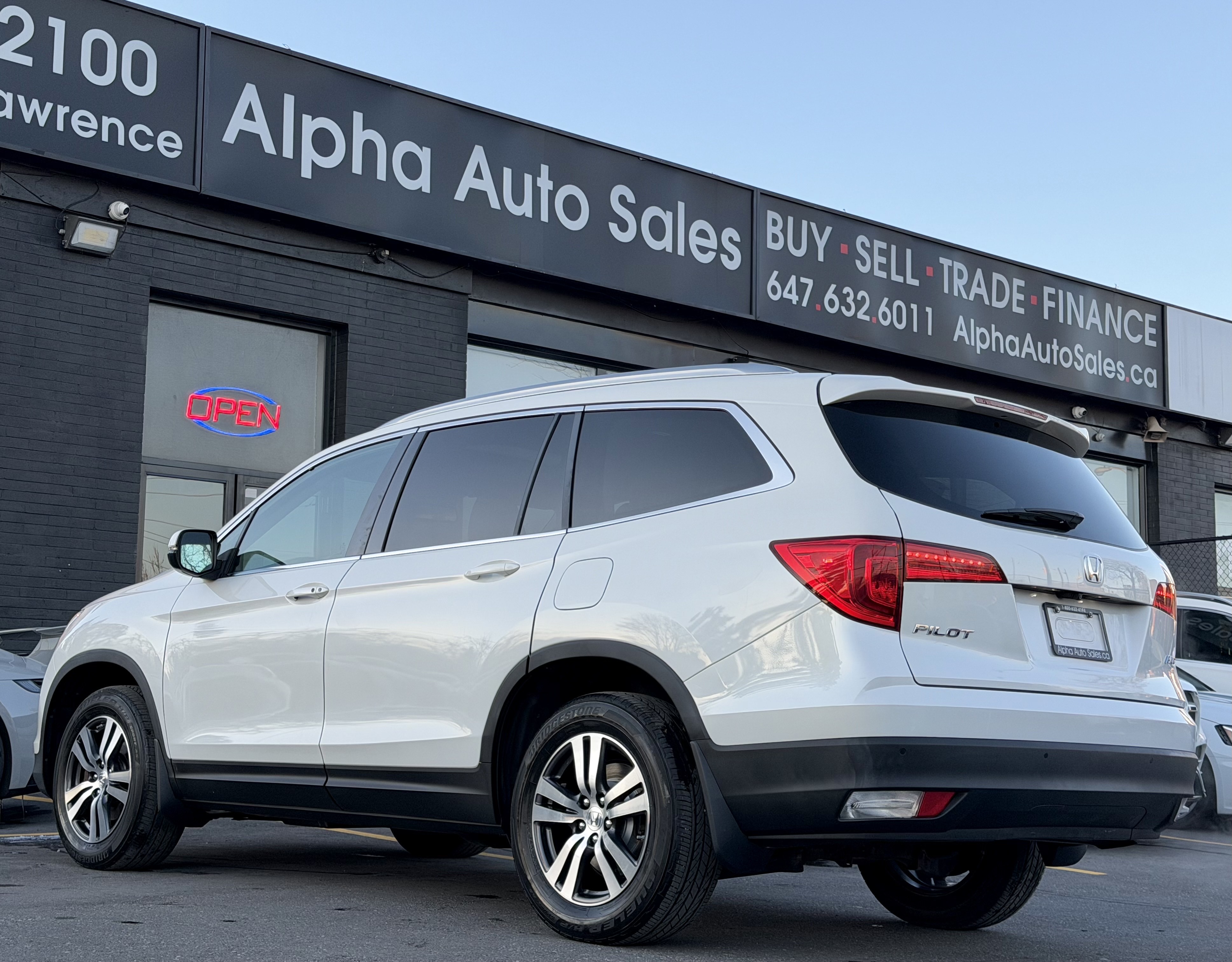 Honda Pilot EX-L w/ Navi AWD - 8 Passenger - White Exterior on Gray Interior - Carfax Verified - Clean Title - One Owner - Local Ontario Vehicle - LOW KM's ONLY 122k - Loaded w/ Leather Heated Seats, Heated Steering, Sunroof, Navigation, Back up Camera, Collision Mitigation Braking system, Forward Collision Warning, Lane-departure Warning, Road-departure Mitigation, Adaptive Cruise Control, Lane-keeping Assist, 2nd Row Heated Seats, Tri-Zone Climate, Remote Starter, Keyless Entry, USB, XM, Bluetooth Phone & Audio, Hondalink, Econ Mode, Power Tailgate, 18 Inch Alloy Wheels & So Much More! FINANCING AVAILABLE - OAC!