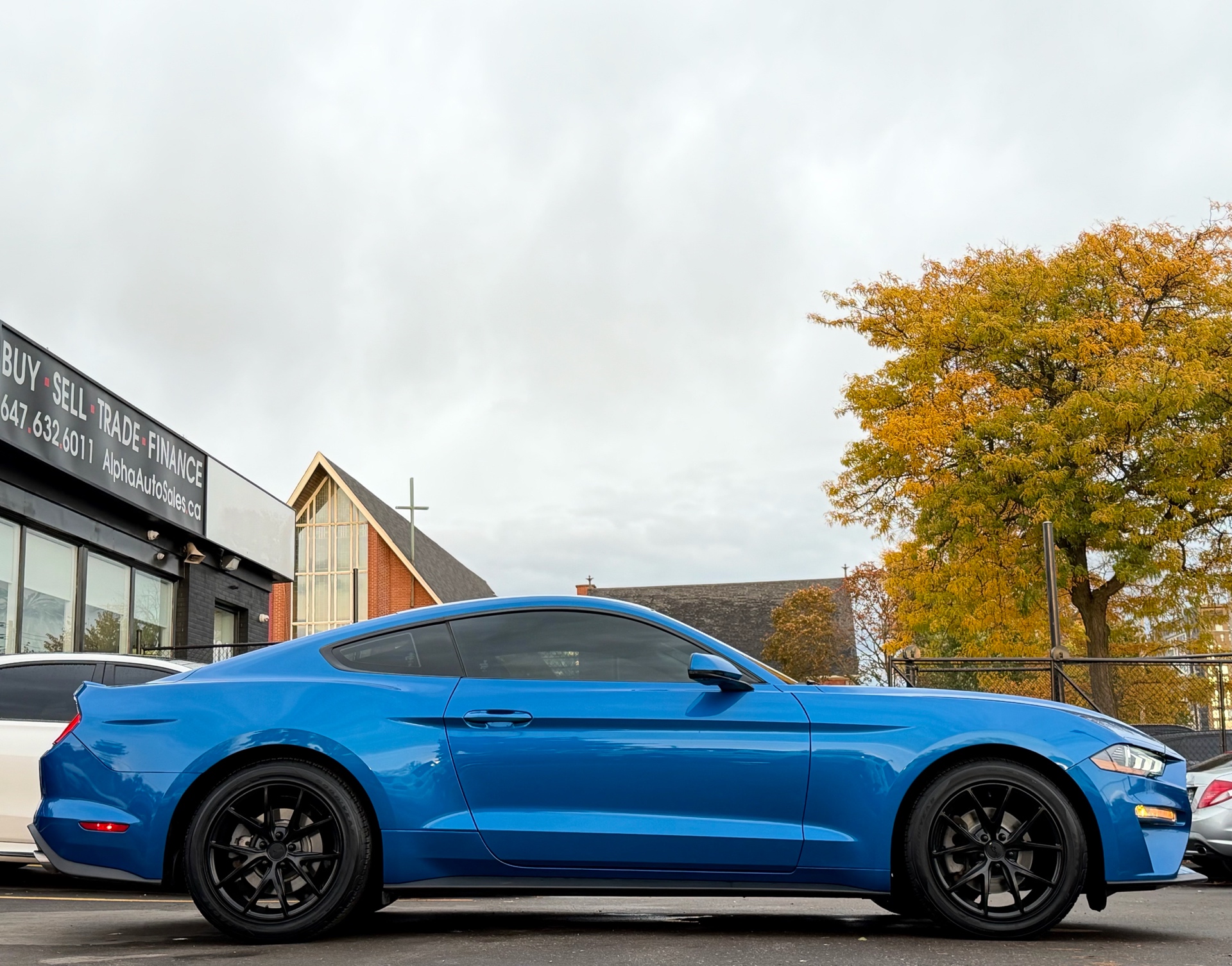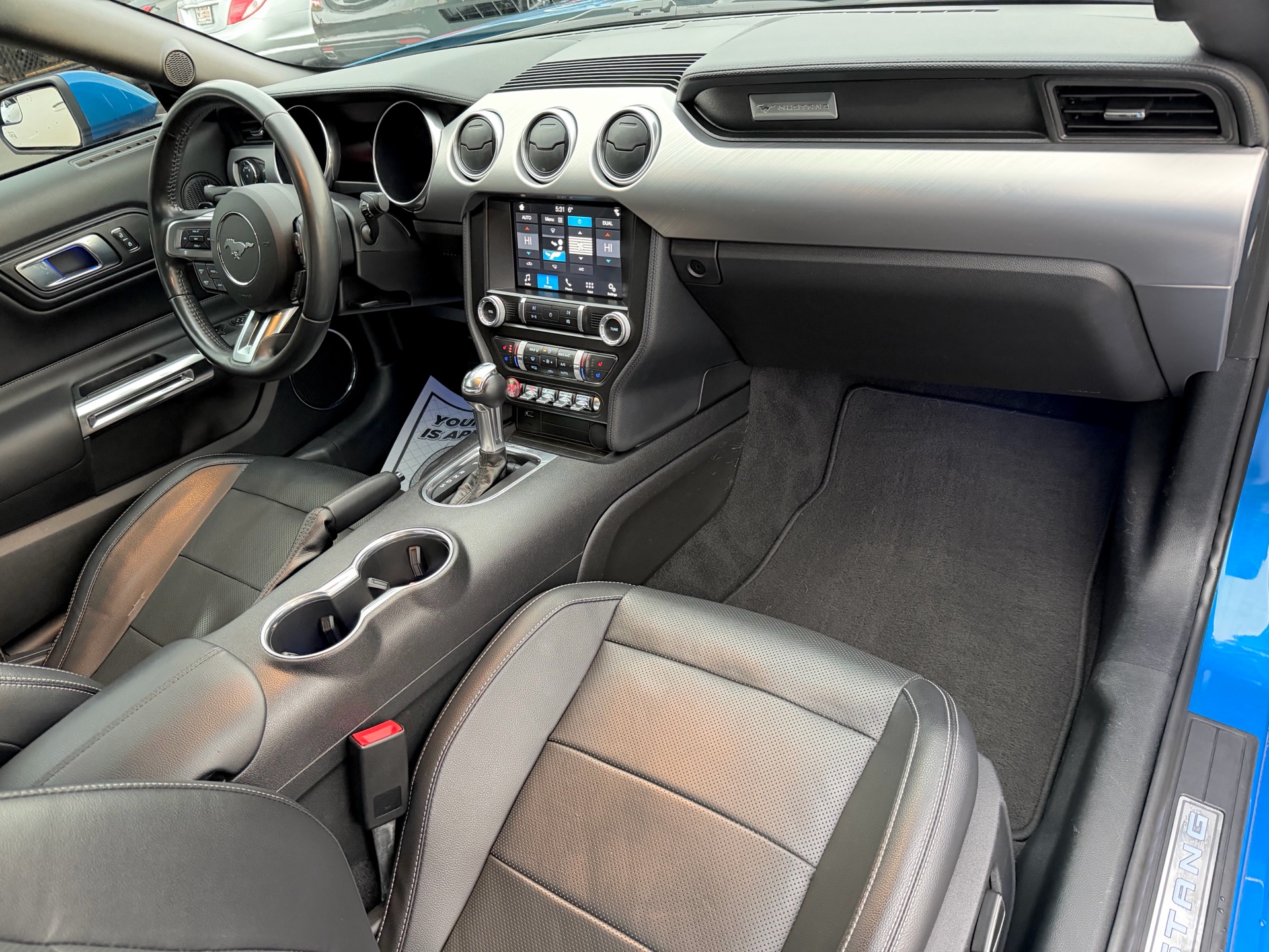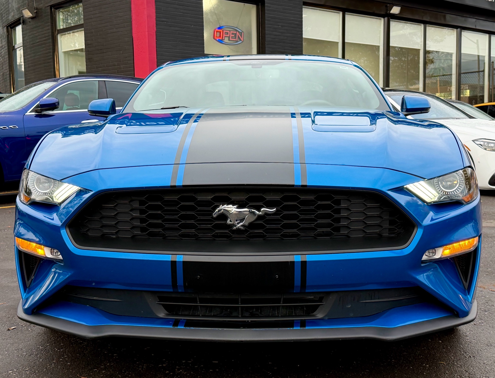 Ford Mustang Ecoboost Fastback Premium - Velocity Blue Metallic Exterior on Black Interior - Carfax Verified - No Accidents - Local Ontario Vehicle - LOW KM's ONLY 69k - Loaded w/ Leather Heated/Ventilated Seats, Driver Power Seat, Back up Camera, Parking Sensors, Steering Controls, Drive Modes, Dual Zone Climate, AUX, USB, XM, Bluetooth, Apple Carplay, Track Apps, Ambient Lighting, Xenon Lights, Factory Remote Starter, Stripe Package, 10 Speed Selectshift Automatic, Niche Wheels & So Much More! FINANCING AVAILABLE - OAC!