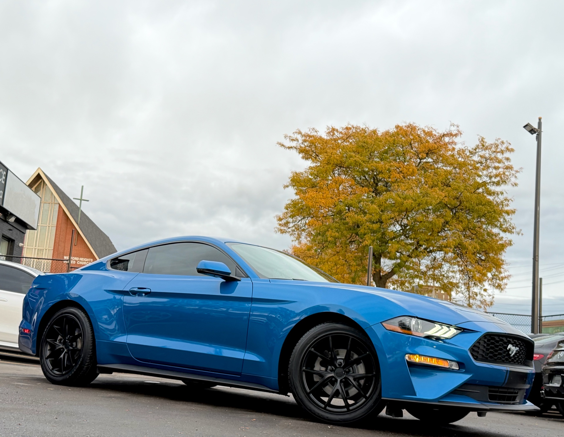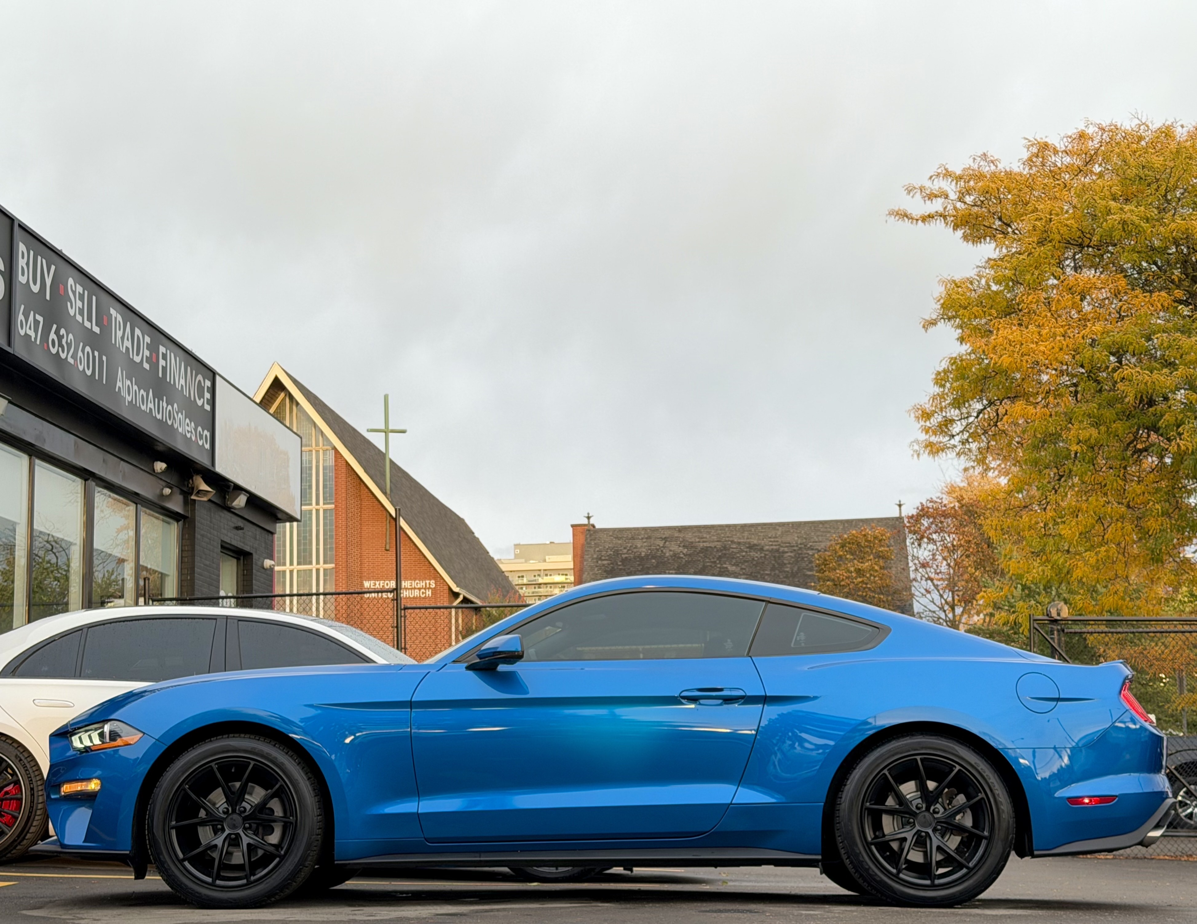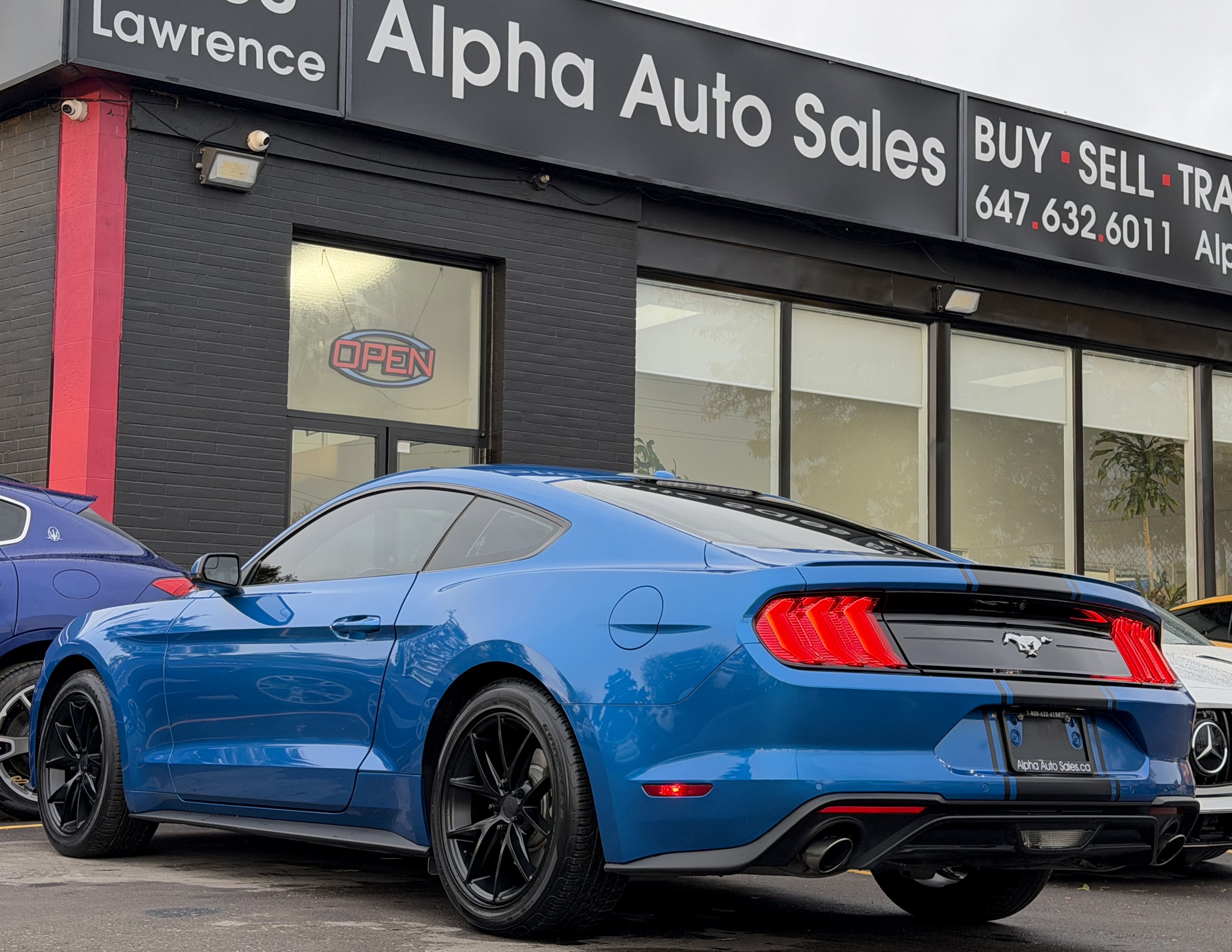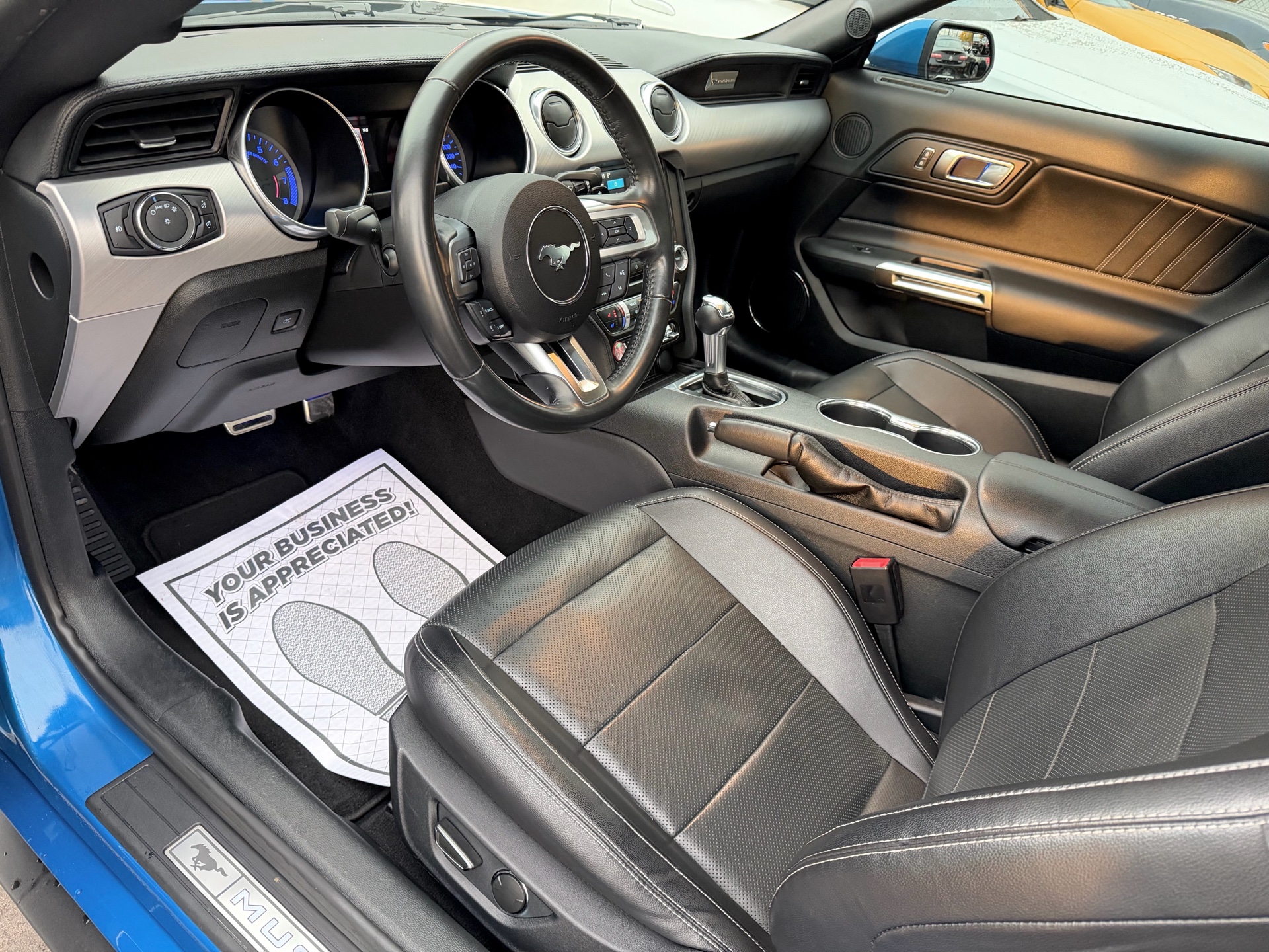 Ford Mustang Ecoboost Fastback Premium - Velocity Blue Metallic Exterior on Black Interior - Carfax Verified - No Accidents - Local Ontario Vehicle - LOW KM's ONLY 69k - Loaded w/ Leather Heated/Ventilated Seats, Driver Power Seat, Back up Camera, Parking Sensors, Steering Controls, Drive Modes, Dual Zone Climate, AUX, USB, XM, Bluetooth, Apple Carplay, Track Apps, Ambient Lighting, Xenon Lights, Factory Remote Starter, Stripe Package, 10 Speed Selectshift Automatic, Niche Wheels & So Much More! FINANCING AVAILABLE - OAC!