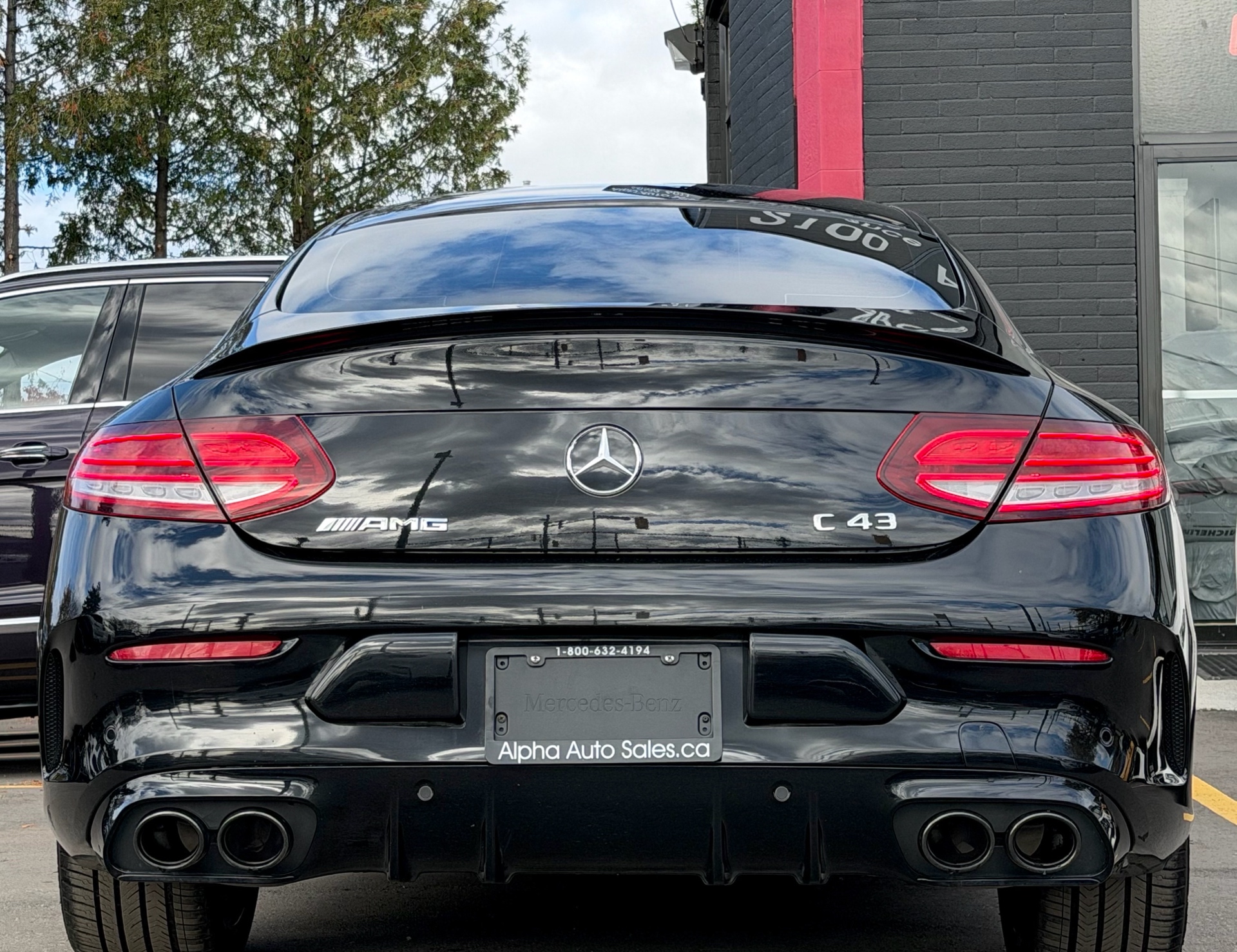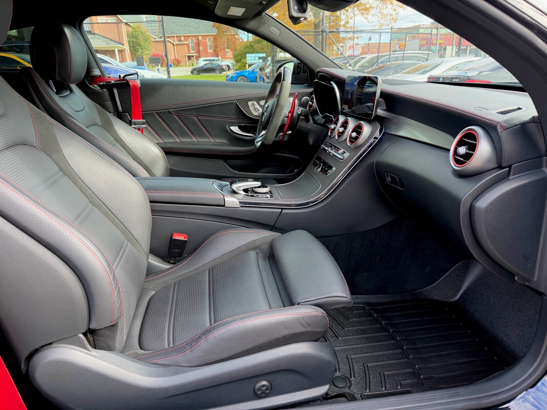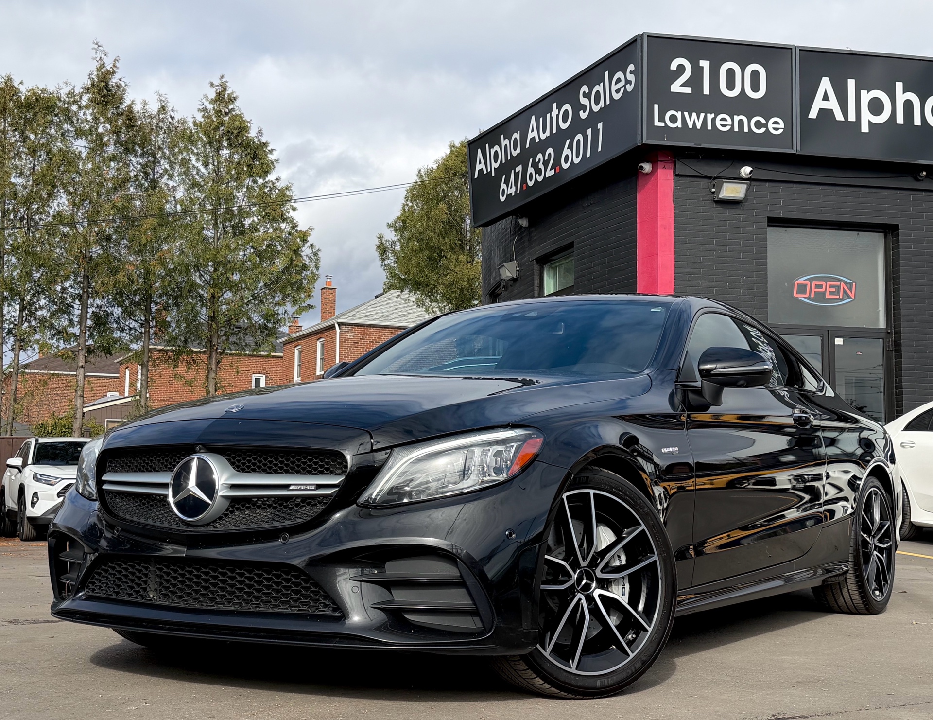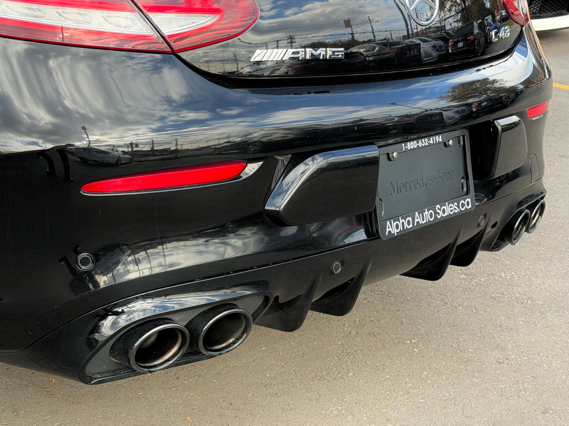 AMG C43 Coupe 4MATIC - Premium Package - AMG Driver's Package - Technology Package - AMG Night Package - Designo Red Seatbelts - Black Exterior on Black Interior w/Red Stitching - Carfax Verified - Clean Title - Canadian Vehicle - LOW KM's ONLY 63k - Loaded w/ Leather Heated/Sport Seats, Sunroof, Navigation, 360 Surround view Camera, Parking Sensors, Apple CarPlay, Blind Spot Assist, Smartphone Integration, Live Traffic Information, Navigation Services, Burmester Surround Sound System, Touchpad, SiriusXM Satellite Radio, 10.25" Central Media Display, Google Android Auto, Front Wireless Phone Charging, KEYLESS GO, Active MULTIBEAM LED Headlamps, 12.3" Instrument Cluster Display, Adaptive Highbeam Assist (AHA), USB, XM, Bluetooth, Steering Controls, AMG Performance Steering Wheel, Black Nappa/DINAMICA, AMG Track Pace, AMG Drive Unit, AMG Performance Exhaust System, Top Speed Raised to 250 km/h, Paddle Shifters, Dynamic Mode Select, Power Trunk, Sport Brakes, Integrated Garage Door Opener, EASY-PACK Power Trunk Closer, Foot Activated Trunk Release, High Gloss Black Window Surrounds and High Gloss Black Exterior Mirrors, Front & Rear High Gloss Black Apron Trim, Black Chrome Exhaust Trim, Wheels: 19" AMG 5-Twin-Spoke Aero & So Much More! FINANCING AVAILABLE - OAC!