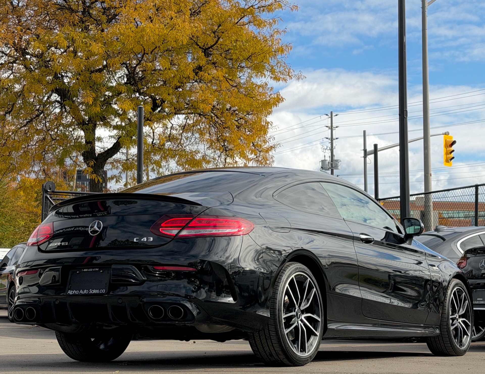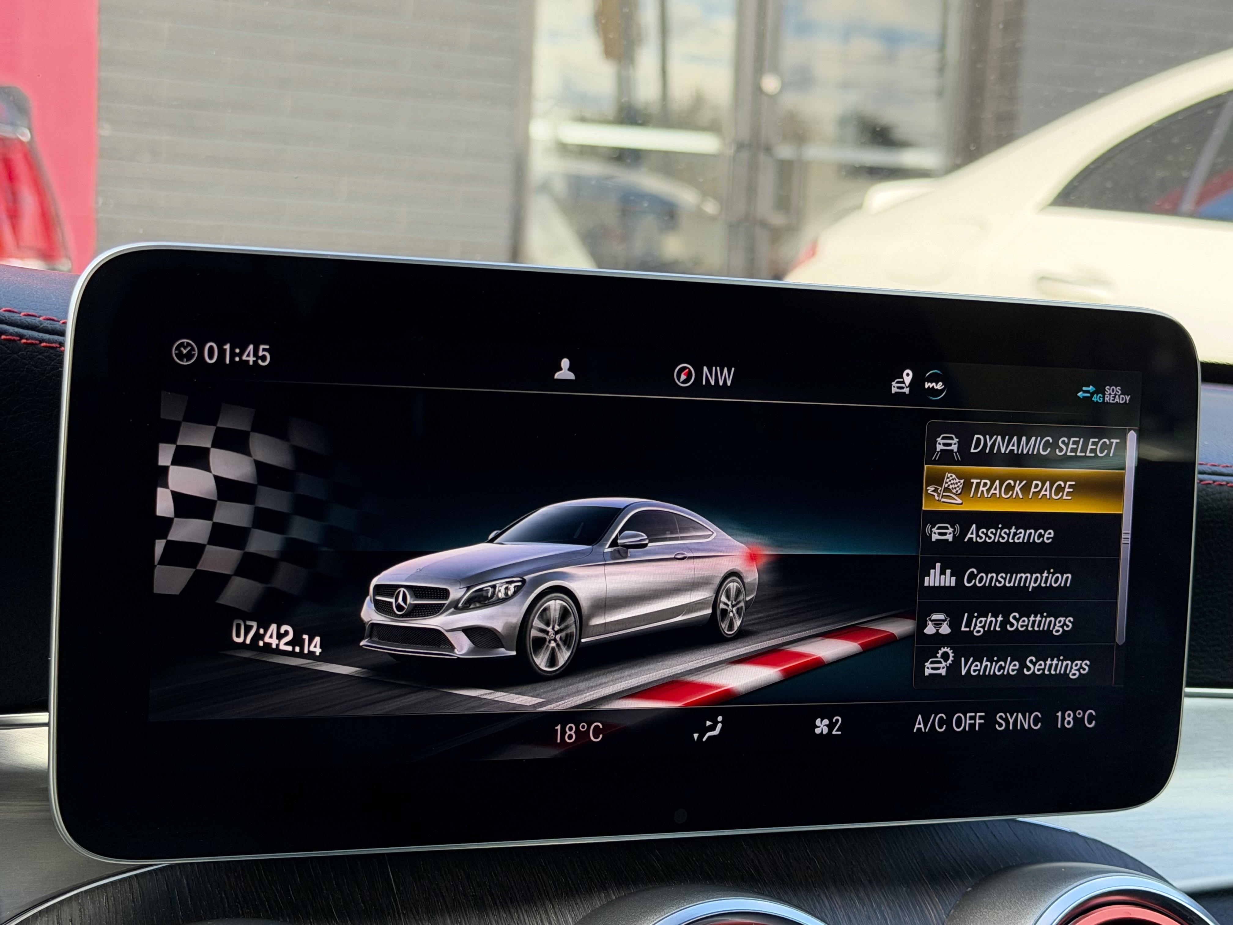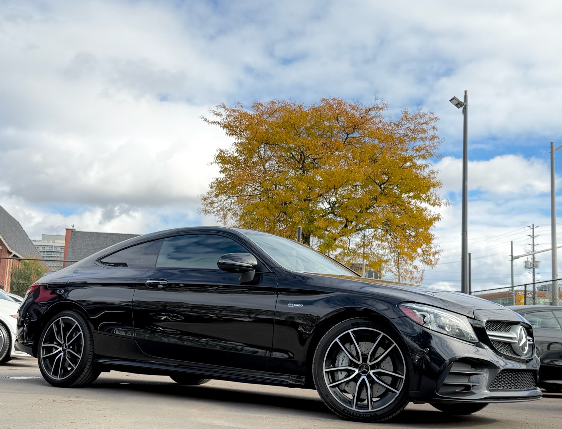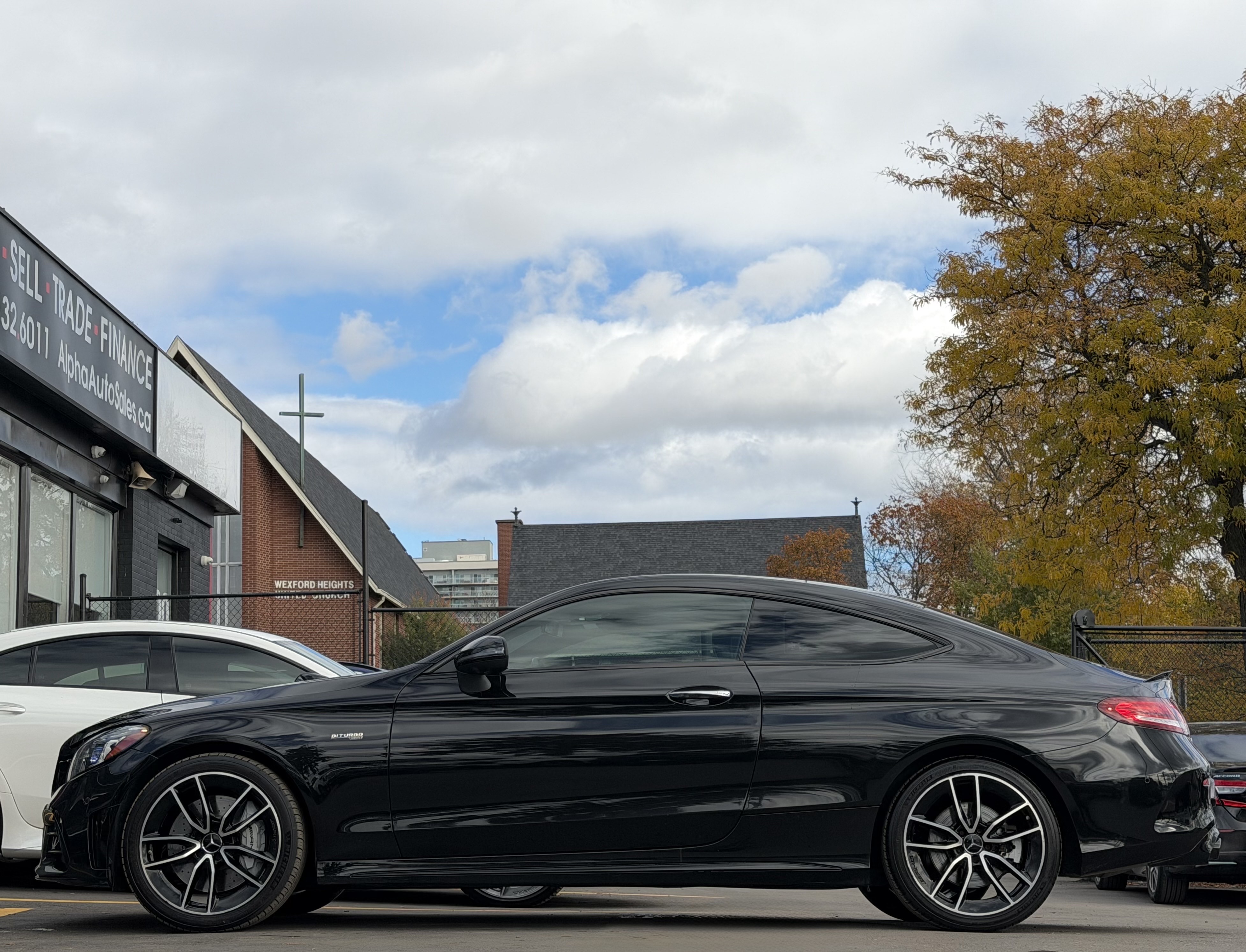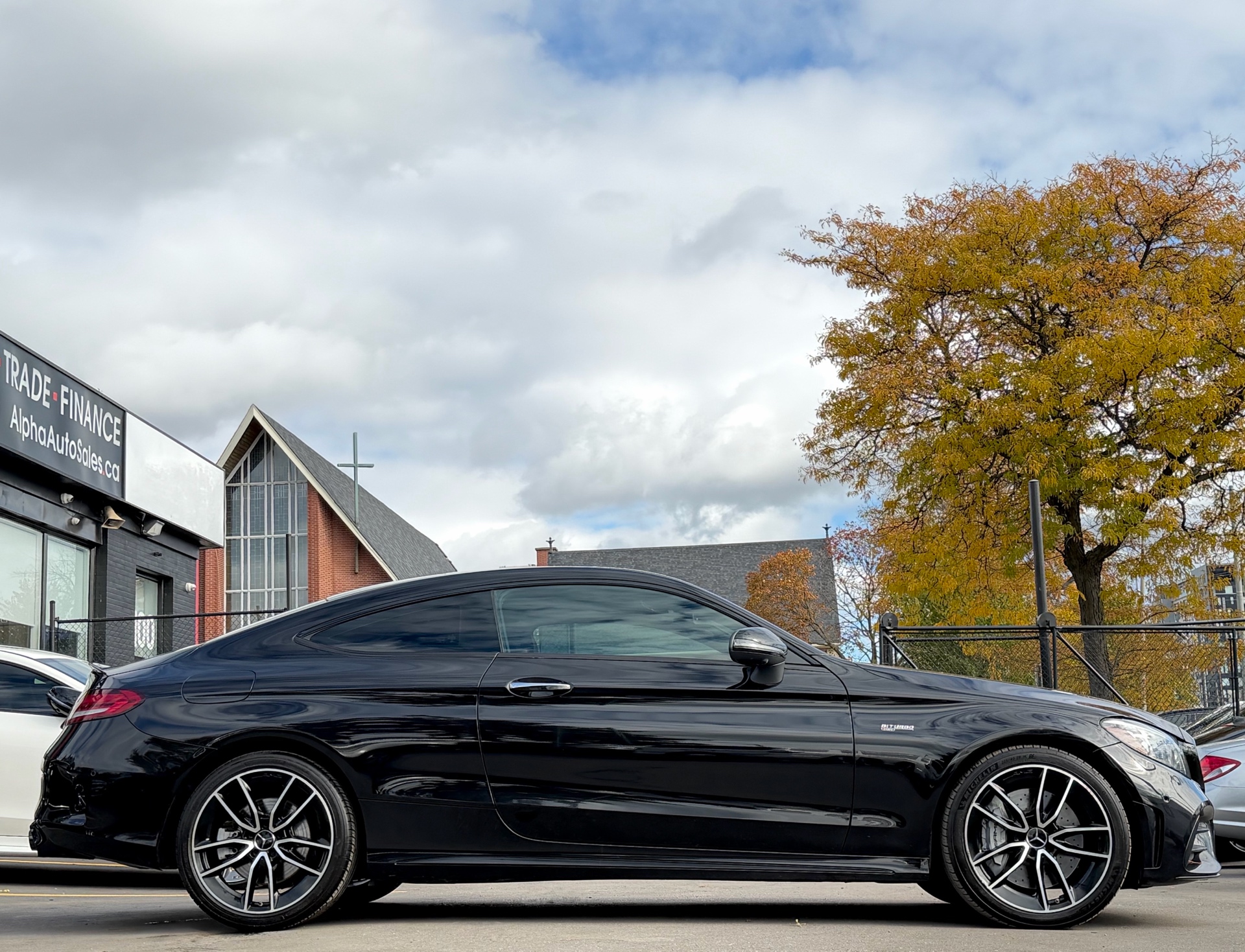 AMG C43 Coupe 4MATIC - Premium Package - AMG Driver's Package - Technology Package - AMG Night Package - Designo Red Seatbelts - Black Exterior on Black Interior w/Red Stitching - Carfax Verified - Clean Title - Canadian Vehicle - LOW KM's ONLY 63k - Loaded w/ Leather Heated/Sport Seats, Sunroof, Navigation, 360 Surround view Camera, Parking Sensors, Apple CarPlay, Blind Spot Assist, Smartphone Integration, Live Traffic Information, Navigation Services, Burmester Surround Sound System, Touchpad, SiriusXM Satellite Radio, 10.25" Central Media Display, Google Android Auto, Front Wireless Phone Charging, KEYLESS GO, Active MULTIBEAM LED Headlamps, 12.3" Instrument Cluster Display, Adaptive Highbeam Assist (AHA), USB, XM, Bluetooth, Steering Controls, AMG Performance Steering Wheel, Black Nappa/DINAMICA, AMG Track Pace, AMG Drive Unit, AMG Performance Exhaust System, Top Speed Raised to 250 km/h, Paddle Shifters, Dynamic Mode Select, Power Trunk, Sport Brakes, Integrated Garage Door Opener, EASY-PACK Power Trunk Closer, Foot Activated Trunk Release, High Gloss Black Window Surrounds and High Gloss Black Exterior Mirrors, Front & Rear High Gloss Black Apron Trim, Black Chrome Exhaust Trim, Wheels: 19" AMG 5-Twin-Spoke Aero & So Much More! FINANCING AVAILABLE - OAC!