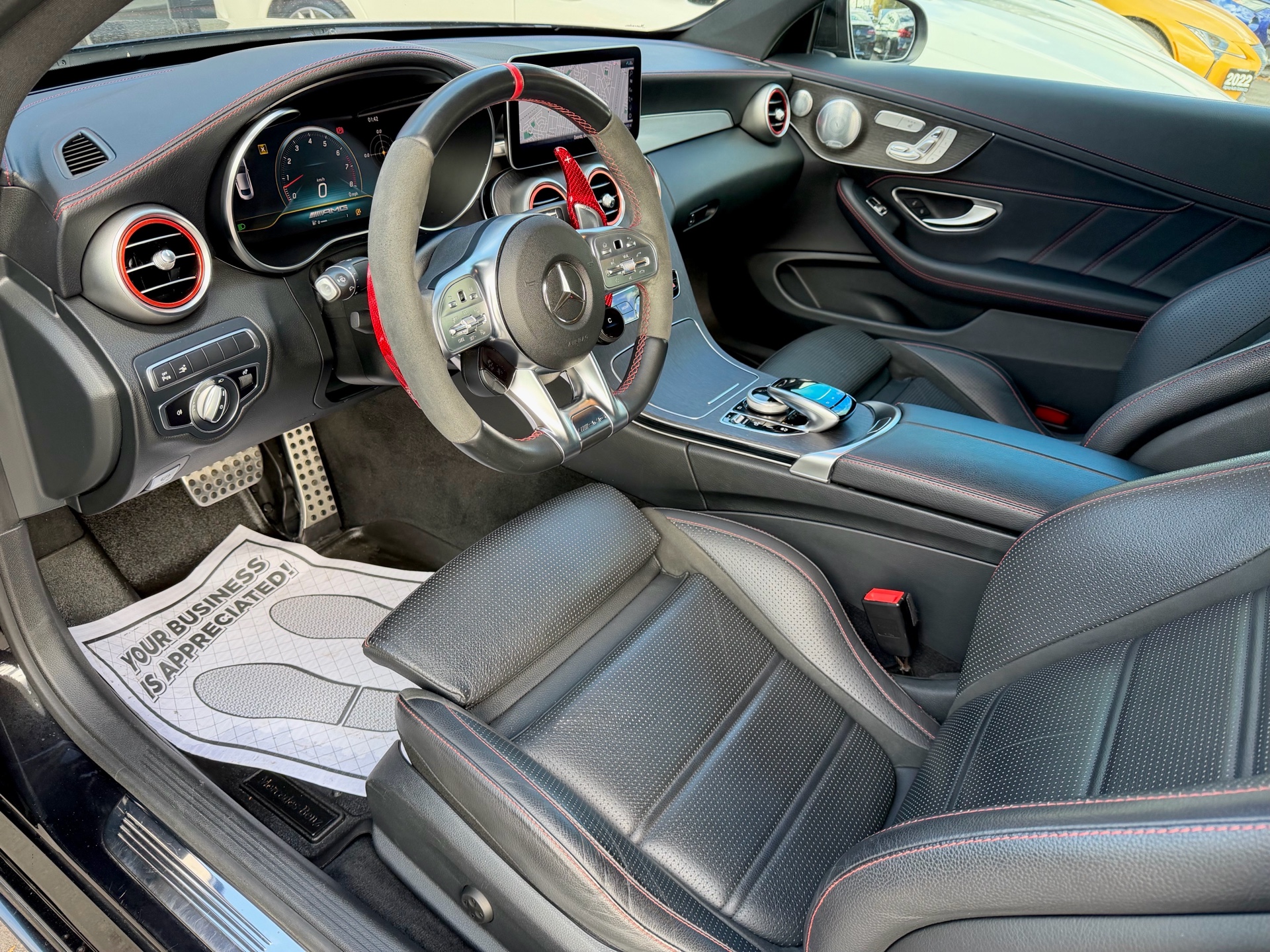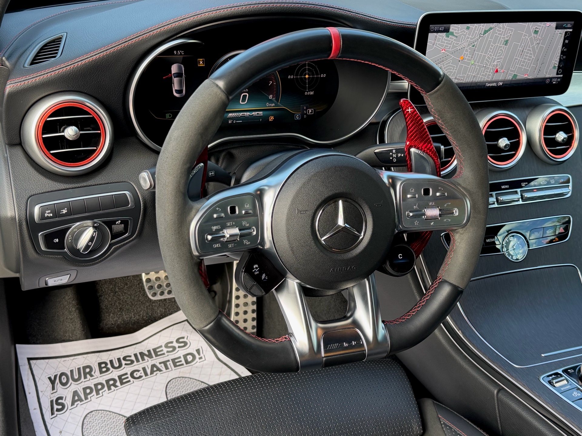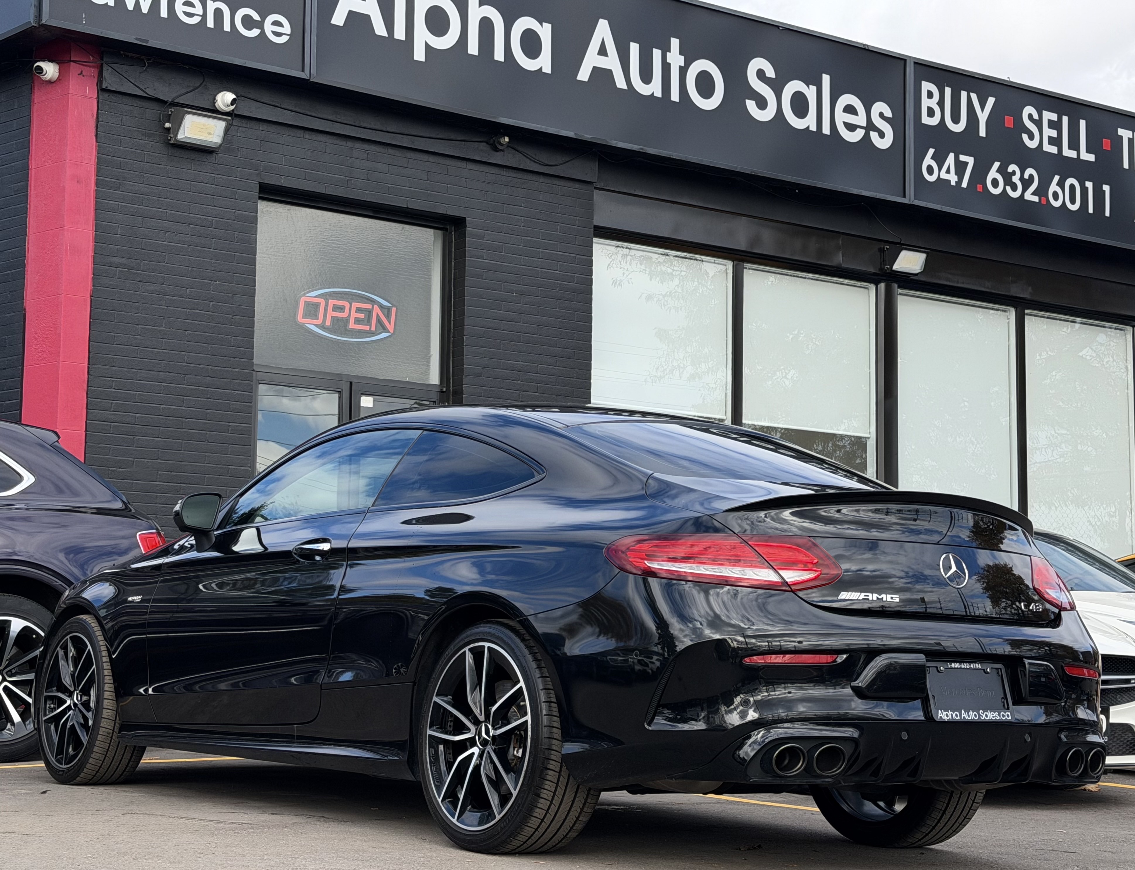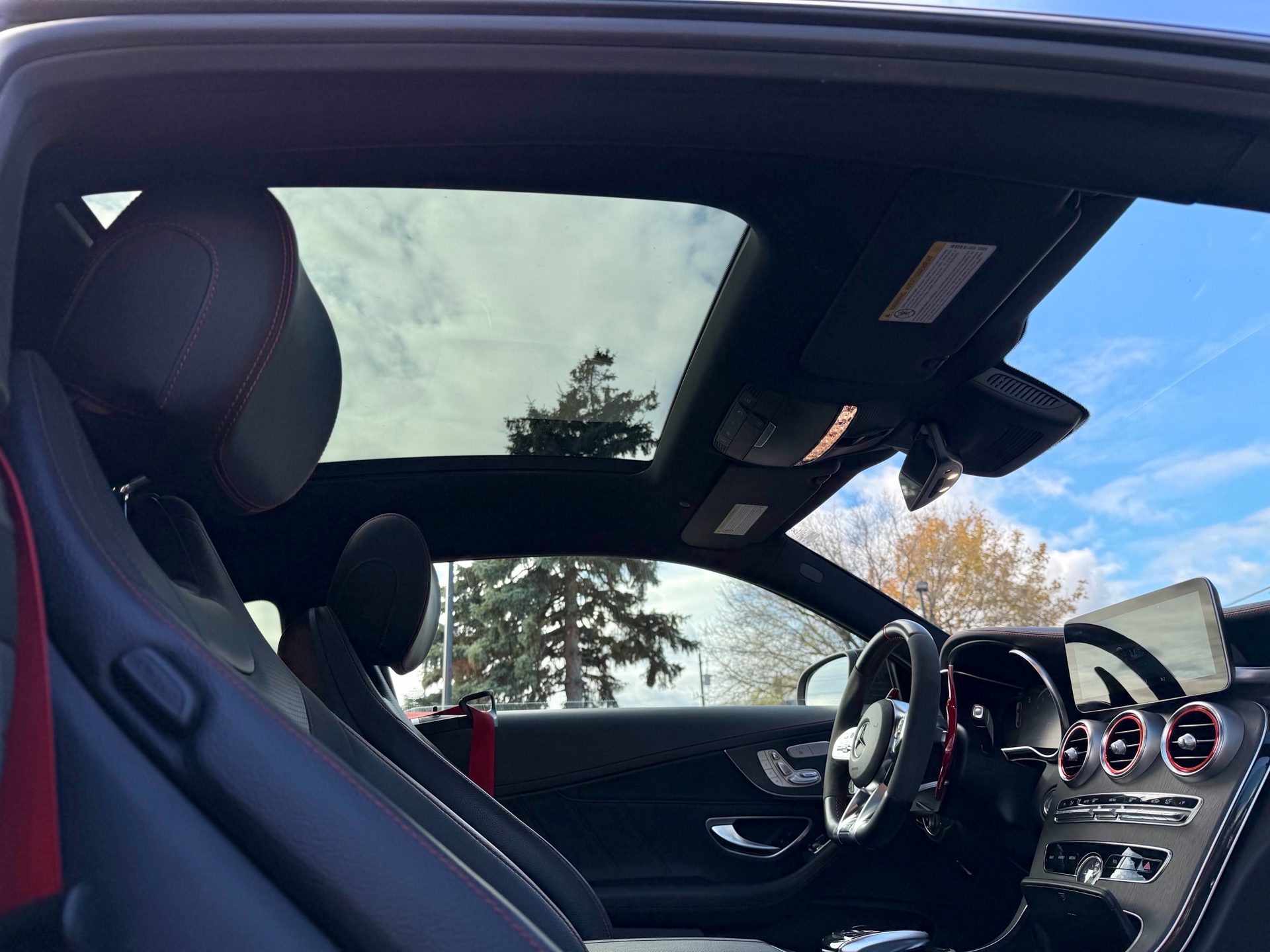 AMG C43 Coupe 4MATIC - Premium Package - AMG Driver's Package - Technology Package - AMG Night Package - Designo Red Seatbelts - Black Exterior on Black Interior w/Red Stitching - Carfax Verified - Clean Title - Canadian Vehicle - LOW KM's ONLY 63k - Loaded w/ Leather Heated/Sport Seats, Sunroof, Navigation, 360 Surround view Camera, Parking Sensors, Apple CarPlay, Blind Spot Assist, Smartphone Integration, Live Traffic Information, Navigation Services, Burmester Surround Sound System, Touchpad, SiriusXM Satellite Radio, 10.25" Central Media Display, Google Android Auto, Front Wireless Phone Charging, KEYLESS GO, Active MULTIBEAM LED Headlamps, 12.3" Instrument Cluster Display, Adaptive Highbeam Assist (AHA), USB, XM, Bluetooth, Steering Controls, AMG Performance Steering Wheel, Black Nappa/DINAMICA, AMG Track Pace, AMG Drive Unit, AMG Performance Exhaust System, Top Speed Raised to 250 km/h, Paddle Shifters, Dynamic Mode Select, Power Trunk, Sport Brakes, Integrated Garage Door Opener, EASY-PACK Power Trunk Closer, Foot Activated Trunk Release, High Gloss Black Window Surrounds and High Gloss Black Exterior Mirrors, Front & Rear High Gloss Black Apron Trim, Black Chrome Exhaust Trim, Wheels: 19" AMG 5-Twin-Spoke Aero & So Much More! FINANCING AVAILABLE - OAC!