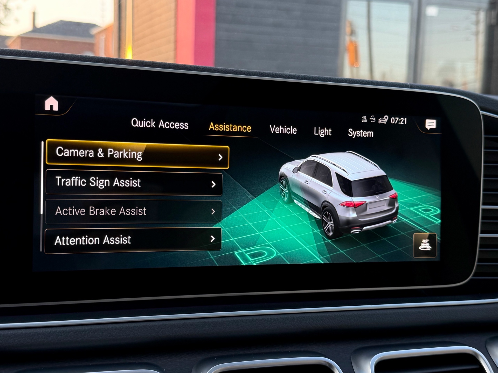 GLE350 4MATIC - AMG Sport Package - Premium Package - Technology Package - Aluminum Running Boards - Selenite Grey Metallic Exterior on Macchiato Beige Interior - Carfax Verified - Clean Title - Local Ontario Vehicle - LOW KM's ONLY 67k - Loaded w/ Leather Heated Seats, Panoramic Sunroof, Navigation, 360 Surround View Camera, Parking Sensors, Active Brake Assist, Attention Assist, Traffic Light View, Blind Spot Assist, Integrated Garage Door Opener, Foot Activated Trunk/Tailgate Release, Active Parking Assist, Burmester Surround Sound System, AUX, USB, XM, Bluetooth, Apple Carplay, Android Auto, KEYLESS GO, Head-Up Display, Active MULTIBEAM LED Lighting System, Adaptive Highbeam Assist (AHA), Third Row Seats, Electrically Adjustable Second Row Seats, AMG Styling Package, Wheels: 20" AMG 5-Twin Spoke Aero Alloy & So Much More! FINANCING AVAILABLE - OAC!