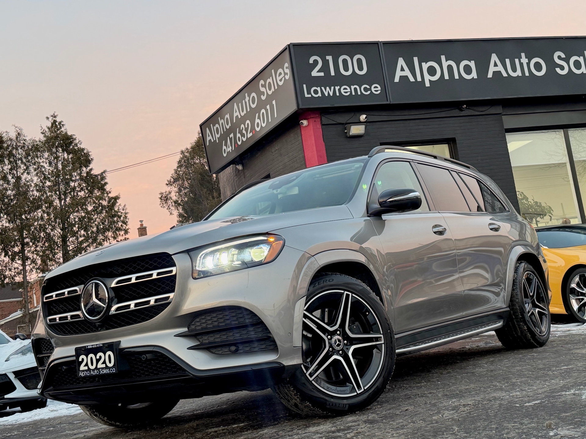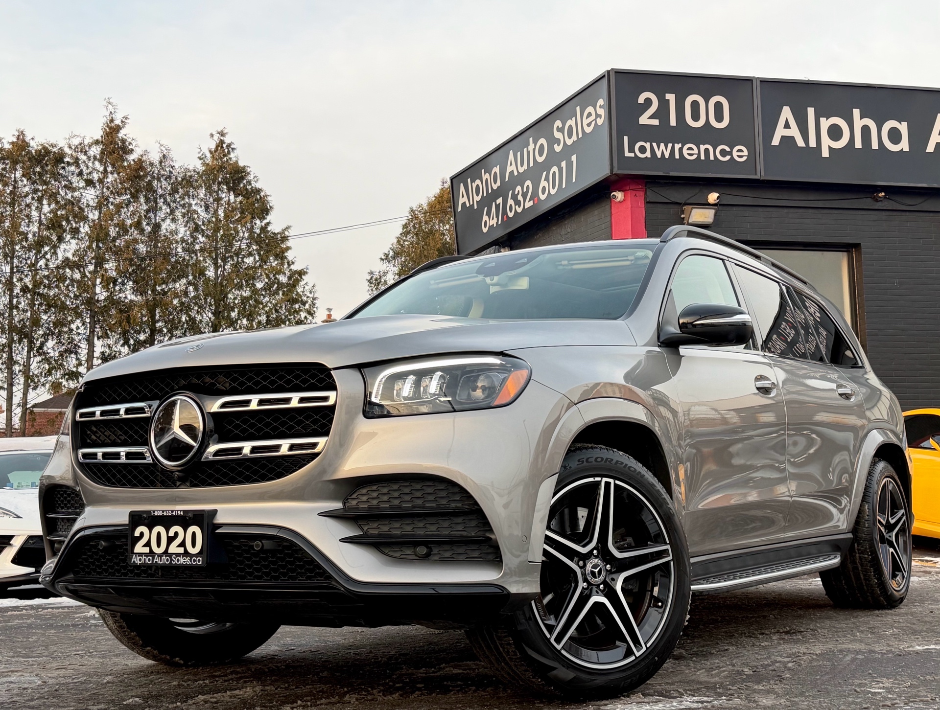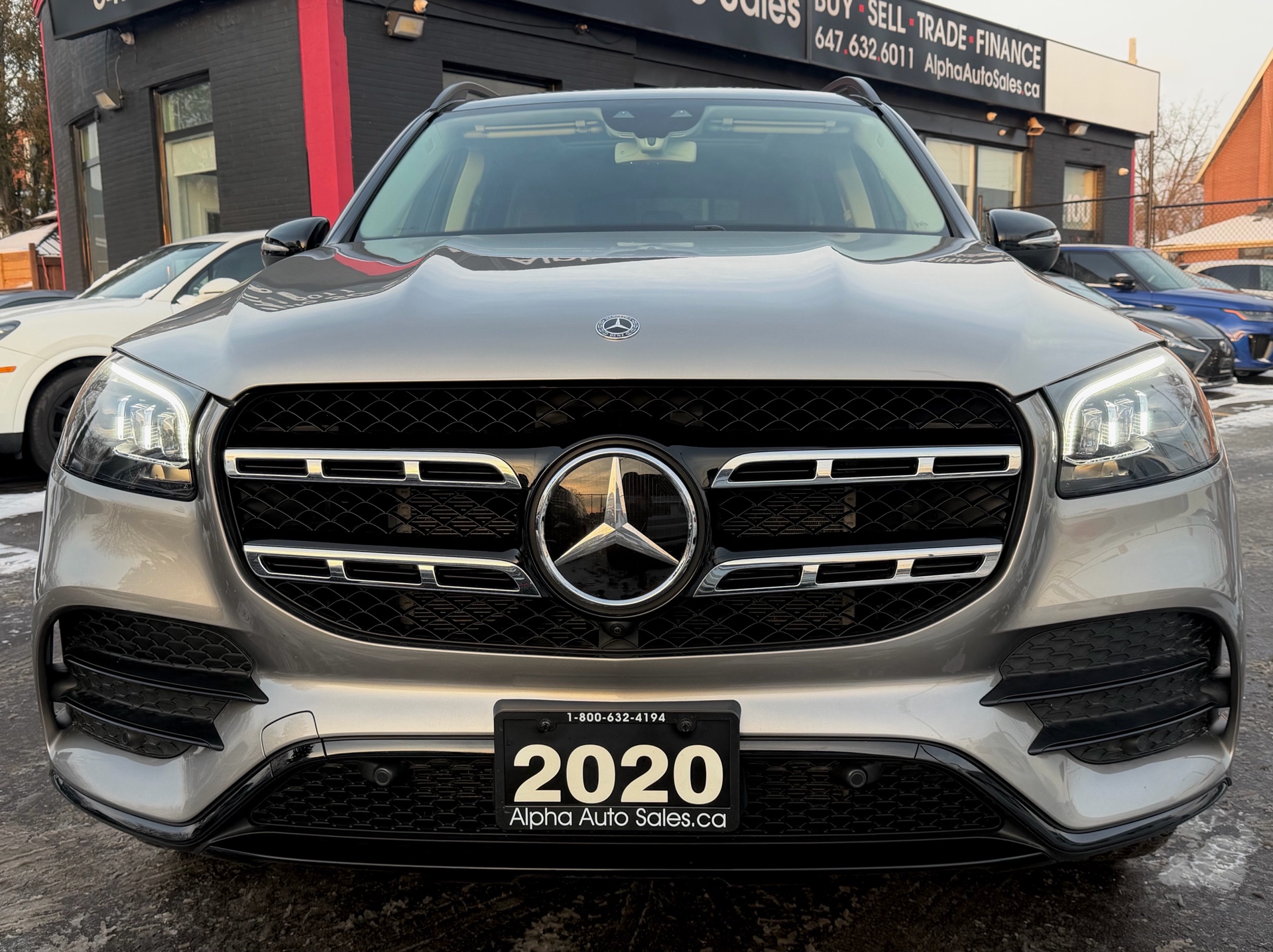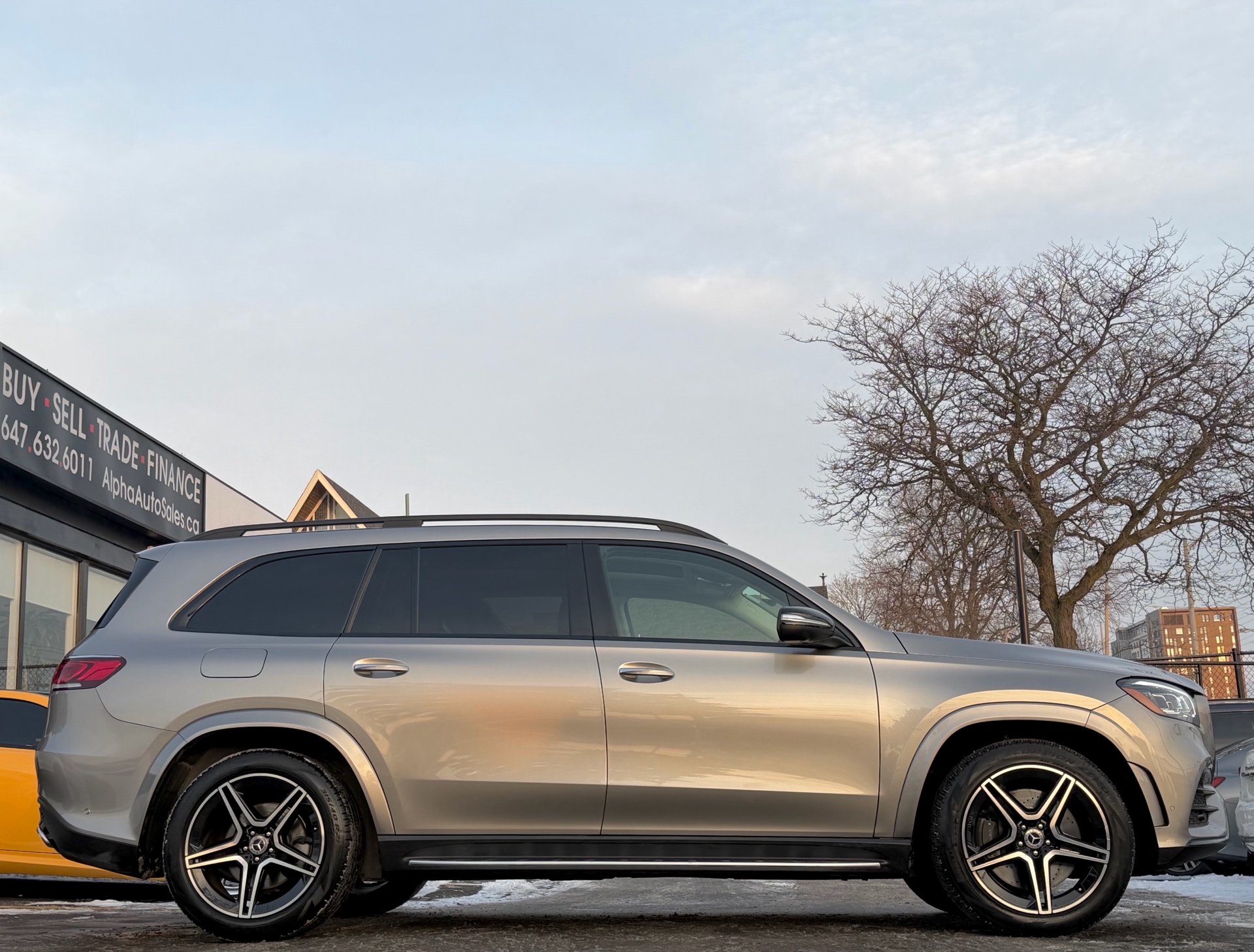 Mercedes GLS450 4MATIC - AMG Night Package - Premium Package - Intelligent Drive Package - Technology Package - Aluminum Running Boards - 7 Seater - Mojave Silver Metallic on Espresso Brown Interior - Carfax Verified - No Accidents - Low KM's ONLY 55k - Leather Heated/Cooled Seats, Panoramic Sunroof, 360 View Camera, Apple Carplay, Android Auto, Head up Display, Intelligent Radar Cruise DISTRONIC Plus, Keyless Go, Wireless Charging, Ambient Lighting, Blind Spot Assist - Fully Loaded!