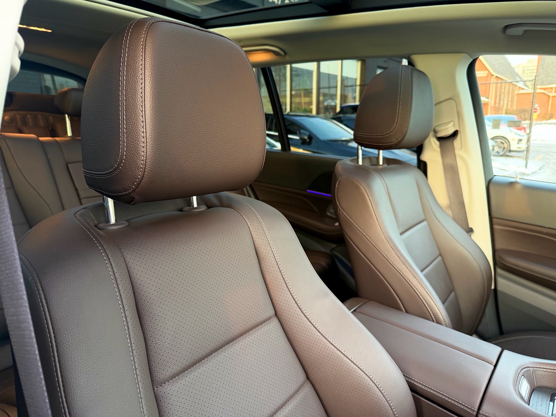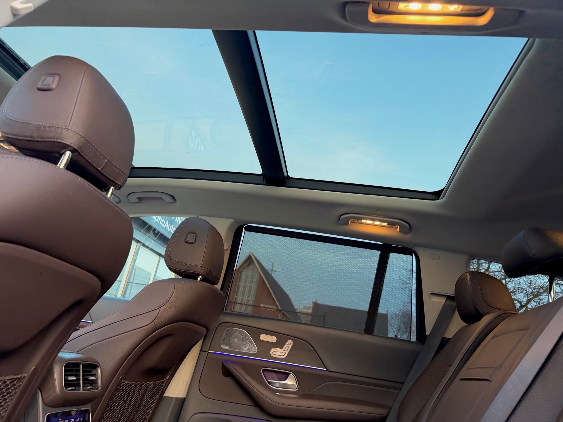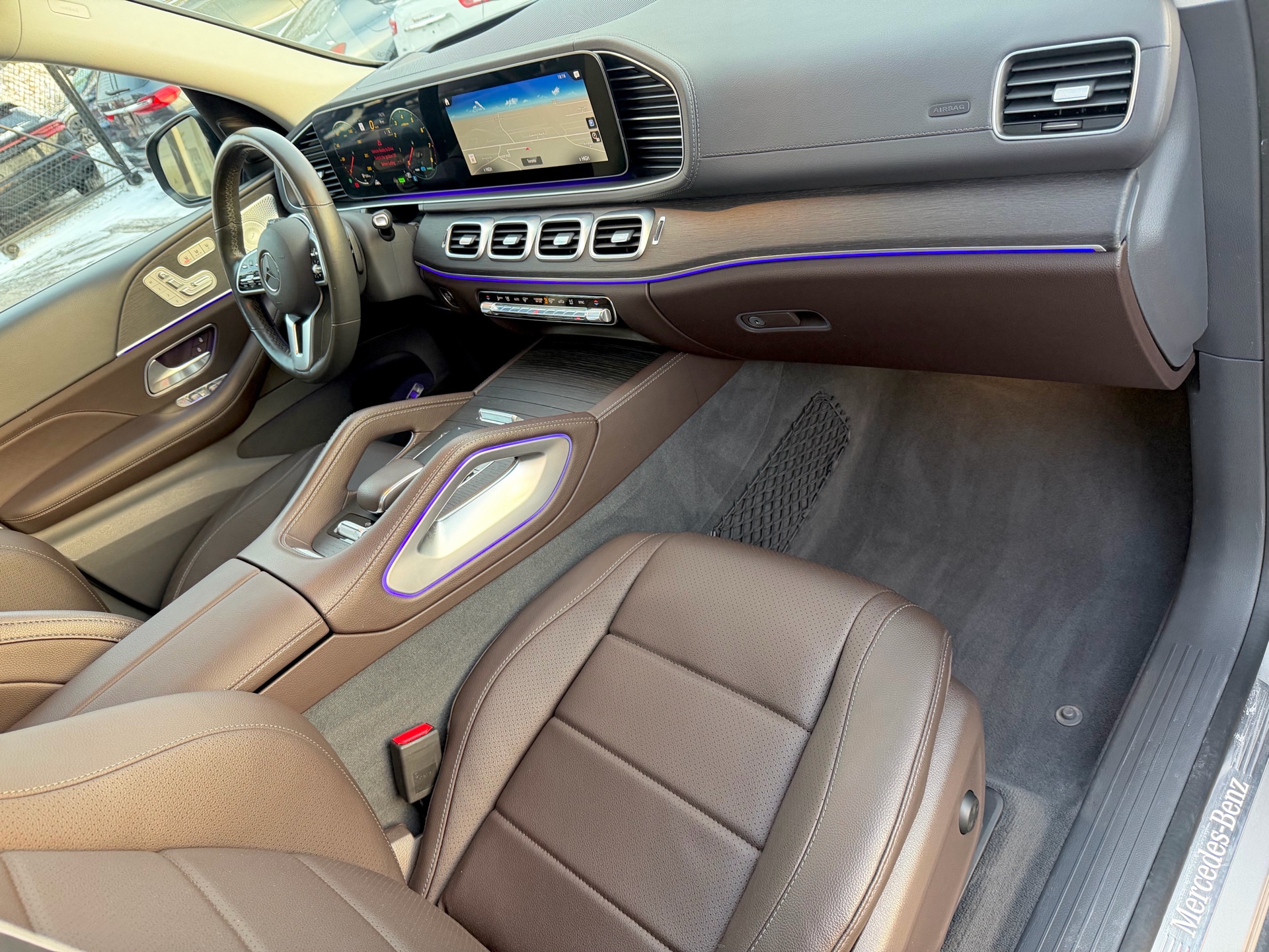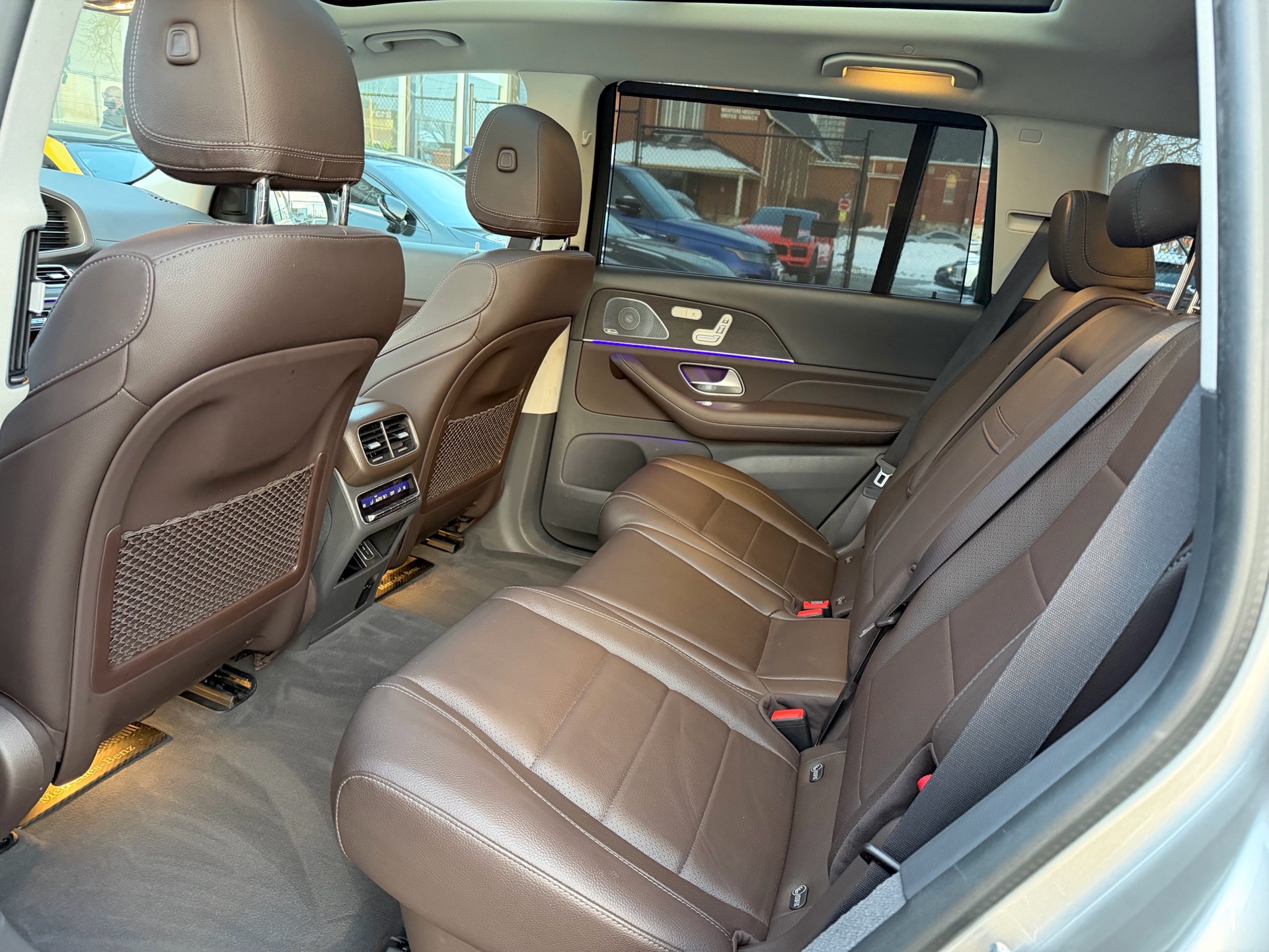 Mercedes GLS450 4MATIC - AMG Night Package - Premium Package - Intelligent Drive Package - Technology Package - Aluminum Running Boards - 7 Seater - Mojave Silver Metallic on Espresso Brown Interior - Carfax Verified - No Accidents - Low KM's ONLY 55k - Leather Heated/Cooled Seats, Panoramic Sunroof, 360 View Camera, Apple Carplay, Android Auto, Head up Display, Intelligent Radar Cruise DISTRONIC Plus, Keyless Go, Wireless Charging, Ambient Lighting, Blind Spot Assist - Fully Loaded!