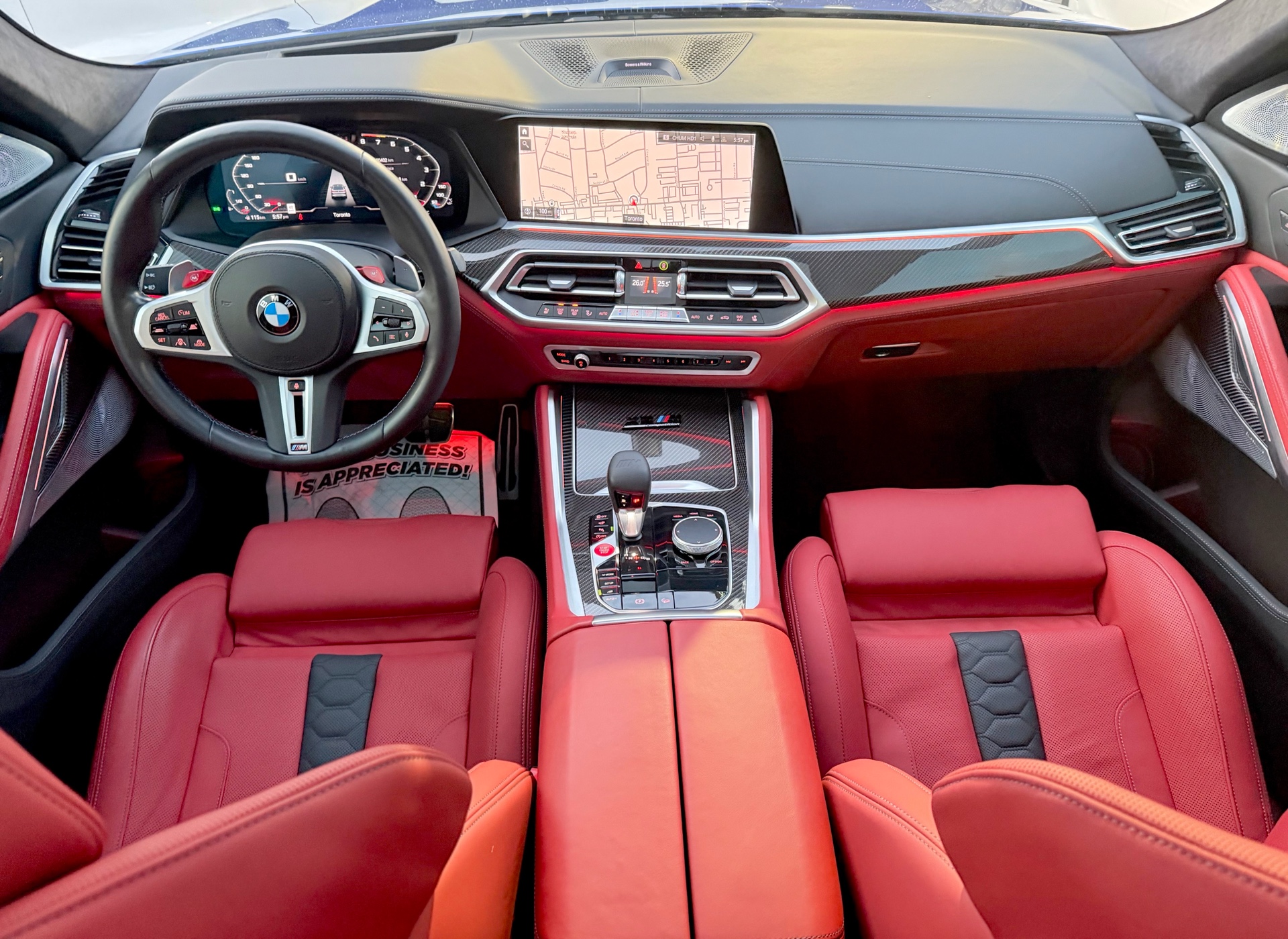 X6M Competition - 617 HP - Ultimate Package ($18k Upgrade) - Bowers & Wilkins Diamond Surround Sound System ($5k Upgrade) - Carbon Fiber Trim - Marina Blue Metallic Exterior on Sakhir Orange Full Merino Leather/Alcantara Upholstery - Carfax Verified - No Accidents - LOW KM's ONLY 60k - Fully Loaded w/ Leather Heated/Ventilated/Massage Seats, Navigation, 3D Surround View Camera, Parking Sensors, HUD, Heated & Cooled Cupholders, Bowers & Wilkins Diamond Surround Sound System, WiFi Hotspot, BMW Drive Recorder, Traffic Jam Assistant, M Carbon Engine Cover, Driving Assistant Professional, Emergency Stop Assist, Evasion Aid, Active Lane Keep Assist, Active Cruise Control w/Stop & Go, Lane Change Assistant, Steering & Lane Control, Front Cross Traffic Warning, Cross-Roads Warning, Carbon Fibre Trim, M Carbon Mirror Caps, M Carbon Rear Spoiler, M Driver's Package, Ventilated Seats, Ambient Air Package, Side Sunshades, Sky Lounge Panoramic Glass Sunroof, Luggage Compartment Package, Wireless Charging w/Extended Bluetooth & USB, Ambient Lighting, Comfort Access, Screen Mirroring, Apple Carplay, Android Auto, Heated Steering, Gesture Control, Soft Close Doors, M Sports Exhaust System, Red Brake Calipers, Remote Starter, Power Tailgate, 21 Inch Wheels & So Much More! FINANCING AVAILABLE - OAC!