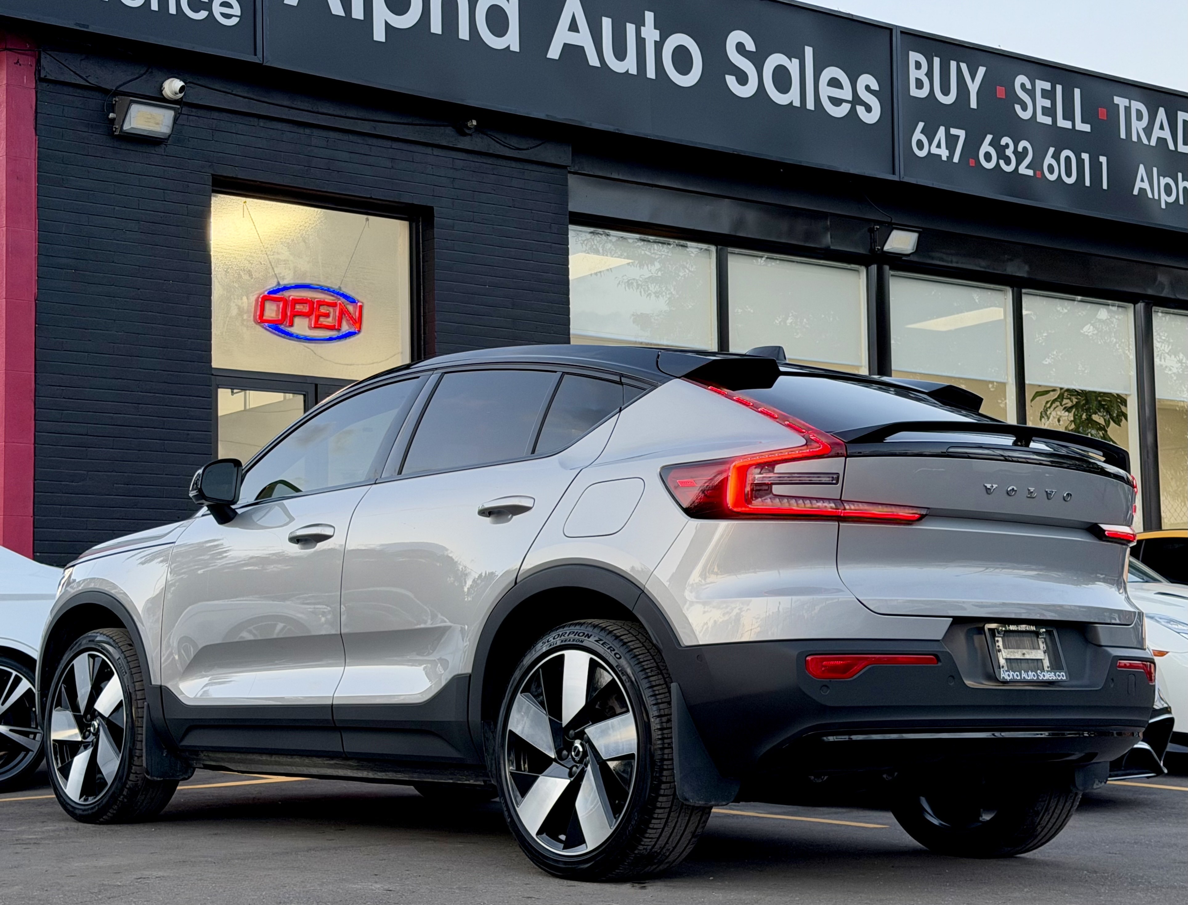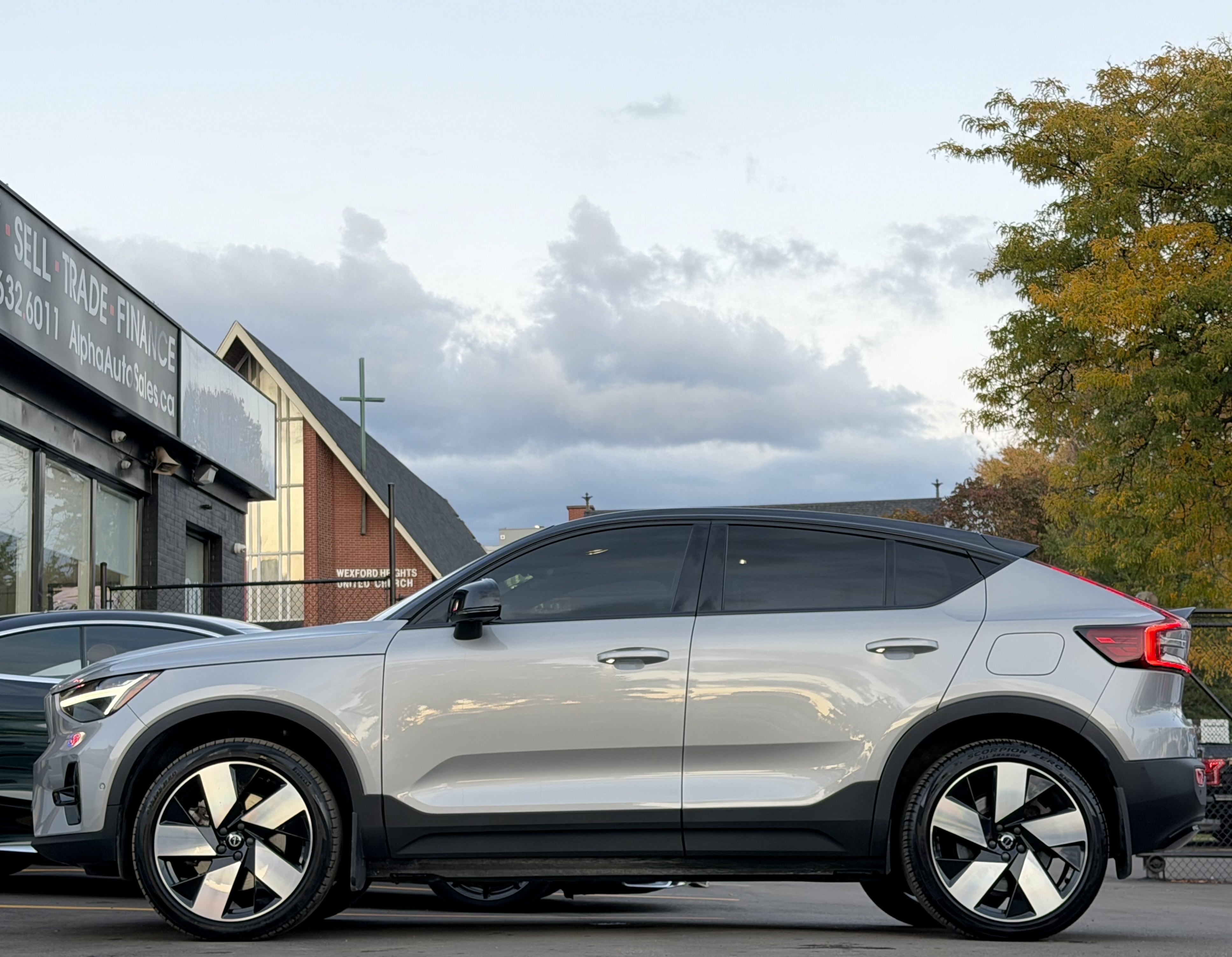 Volvo C40 Recharge Pure Electric P8 eAWD Ultimate - Silver Exterior on Black Interior - Carfax Verified - No Accidents - One Owner - Local Ontario Vehicle - LOW KM's ONLY 43k - Fully Loaded w/ Leather Heated Seats, Heated Steering, Panoramic Sunroof, Navigation, Back up Camera, Parking Sensors, Harman Kardon Premium Sound -inc: 9" Centre Touch Screen Display, 2 USB type-C connections, Bluetooth connection, Google automotive services w/Google Maps, Google Assistant and Google Play Store, Wireless smartphone charger, CarPlay and Android Auto, LED Brakelights, Adaptive Cruise Control, Digital Instrument Cluster, Proximity Key For Doors And Hands-Free Start, Blind Spot Alert, Collision Mitigation Support, Cross Traffic Alert w/Autobrake, Lane Keeping Aid/Run-off Road Mitigation Lane Keeping Assist, Power Tailgate, 19" 5-Spoke Diamond-Cut Alloy Wheels & So Much More! FINANCING AVAILABLE - OAC!
