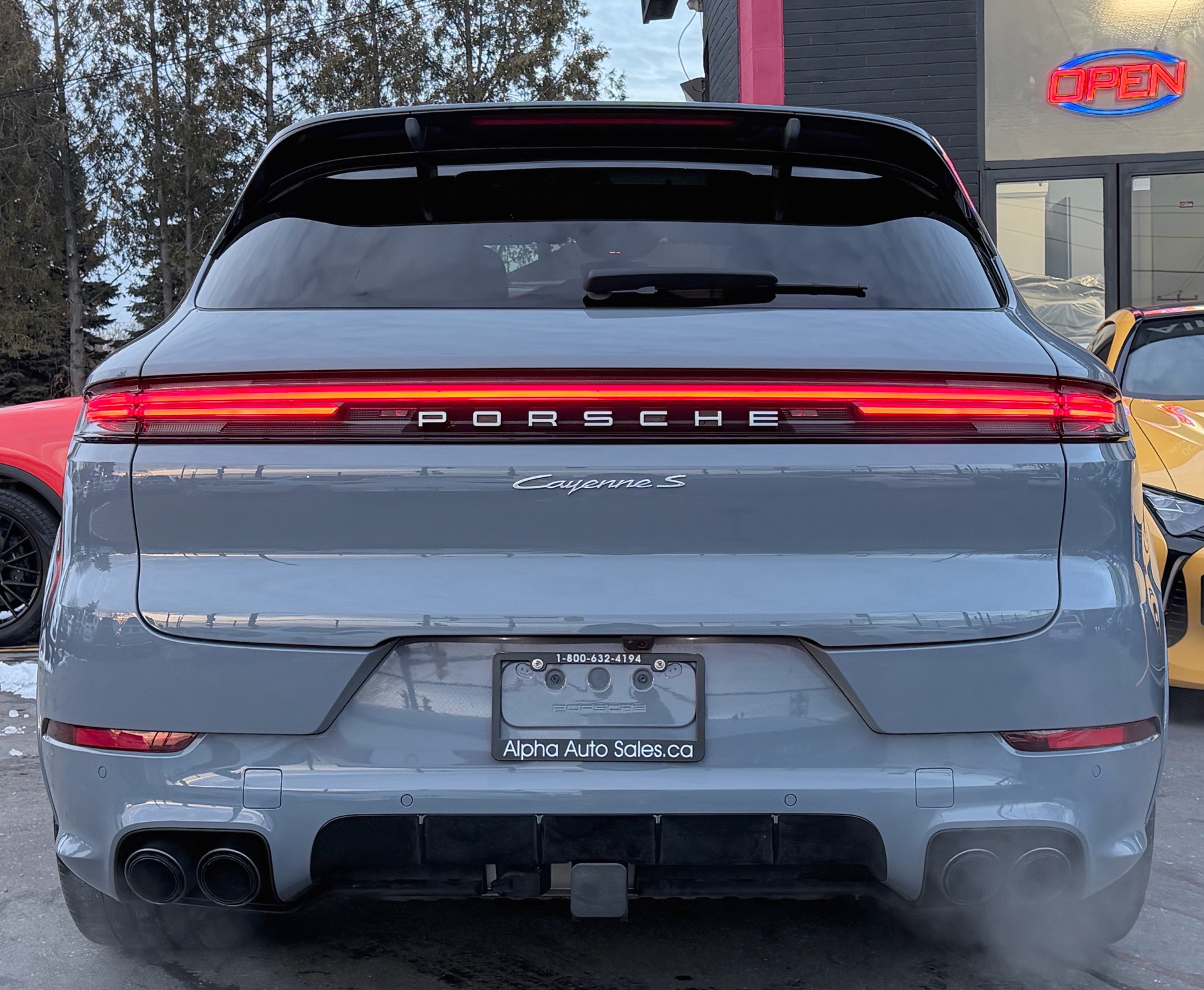 Cayenne S - 4.0L V8 Twin Turbo - 468HP - Arctic Gray Exterior on Black/Bramble Interior - Highly Optioned - 163k Build (Pre Luxury Tax) - Power Seats (14-Way) w/ Memory - Premium Package - Ambient Lighting - Passenger Display - Innodrive inc Adaptive Cruise - Soft Close Doors - Bose Surround - Night Vision Assist - Sport Chrono Package - HD-Matrix LED Headlights - Porsche Crest on Headrest - Sport Design Package in High Gloss Black - 22 Inch Exclusive Design Sport Wheels in Exterior Color - Heated Windshield - Massage Seat Function (Front) Inc, Ventilation - Power Shades Rear - Exclusive Design Fuel Cap - Heated GT Sport Steering in Leather - Porsche Dynamic Chassis Control (PDCC) - Adaptive Air Suspension Inc. Porsche Active - Sport Exhaust System w/ Dark Tailpipes - Under Puddle Light Projectors - Carfax Verified - No Accidents - Local Ontario Vehicle - LOW KM's ONLY 28k - Under Complete Factory Warranty!